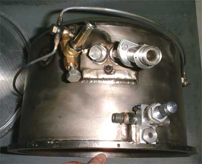 form solid machined and formed sheet titanium(!) components. What’s shown here is one of the spark plugs with the pilot burner fuel fitting and the fuel drain port in the lower right of the picture.