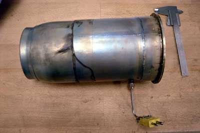 thermocouple has been attached to the engine to simulate the load of the free power turbine. The nozzle itself was used on a small commercial thrust engine and had been extended to better fit Andreas’s engine.